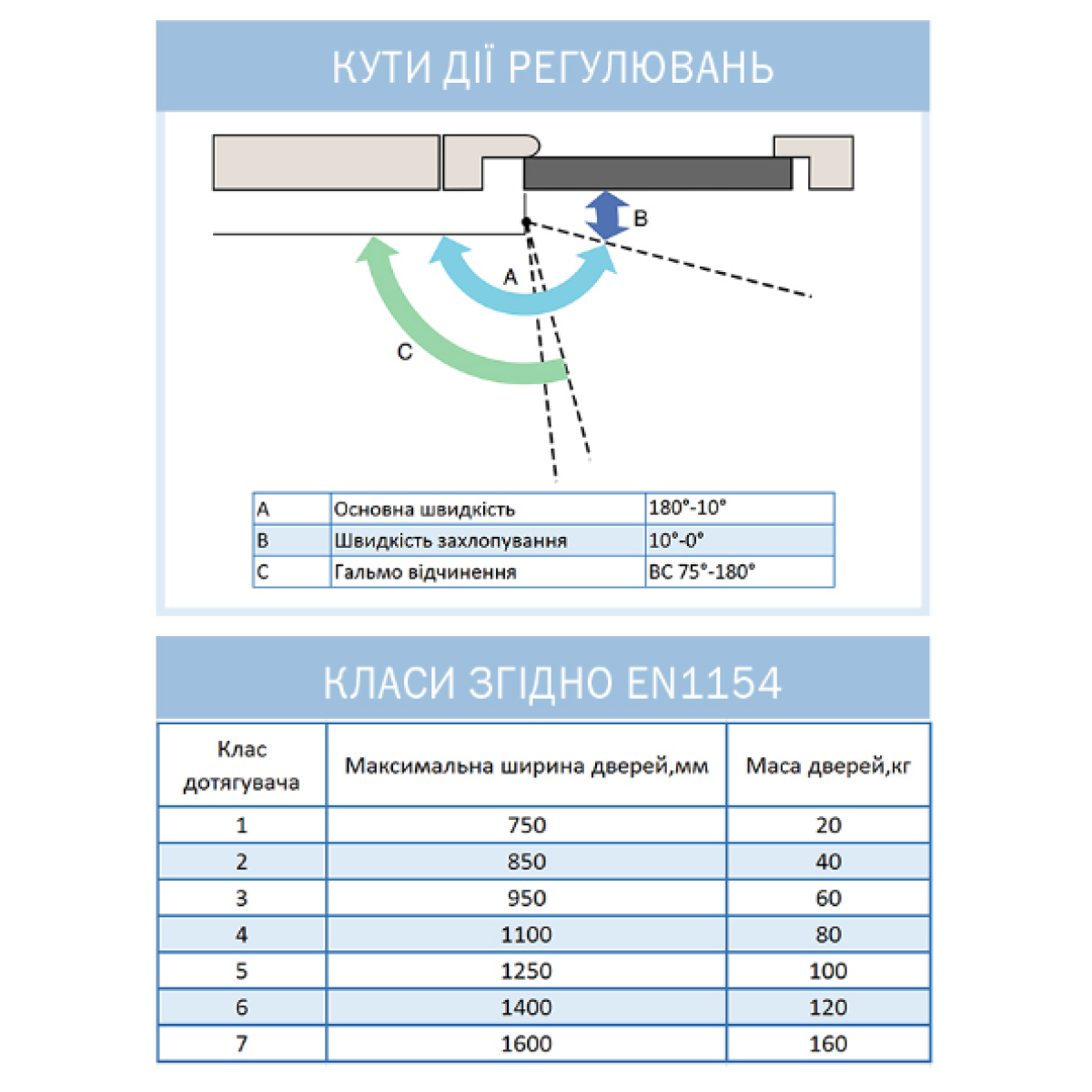 Регулировка класса дотягивателя производится путем перемещения дотягивателя по дверному полотну. монтажный шаблон входящий в комплектацию с дотягивателем.