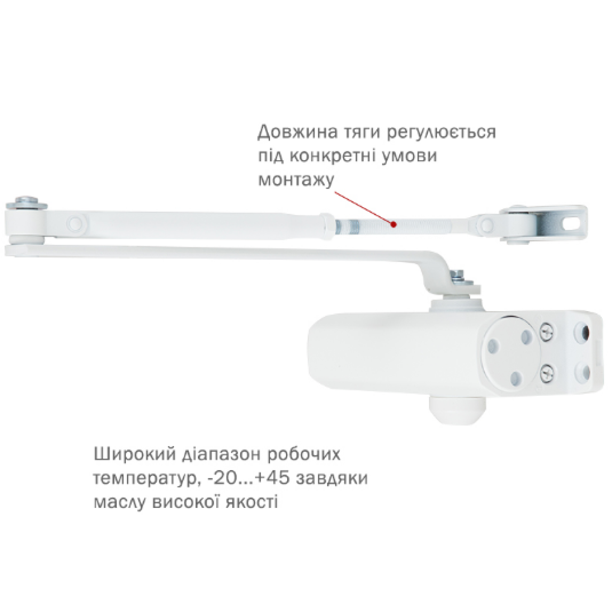 Комплектация: дотягиватель, крепежный комплект, тяга стандартная.