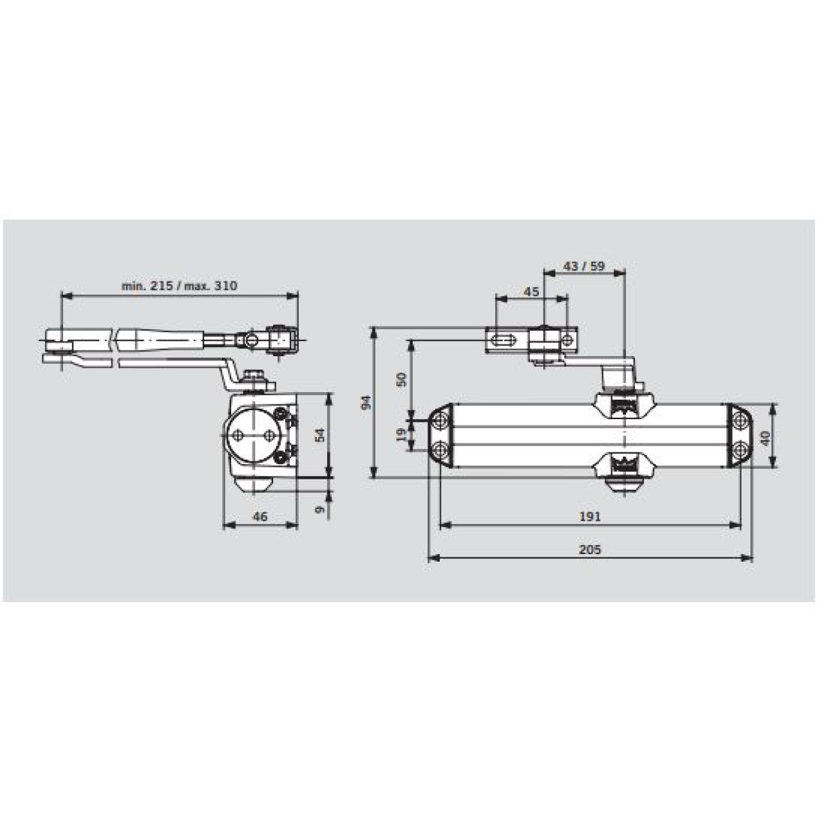 Благодаря компактному дизайну, и как следствие минимальным монтажным размерам, при установке доводчика не требуется монтажная пластина. Усилие закрывания легко подбирается положением доводчика на двери.