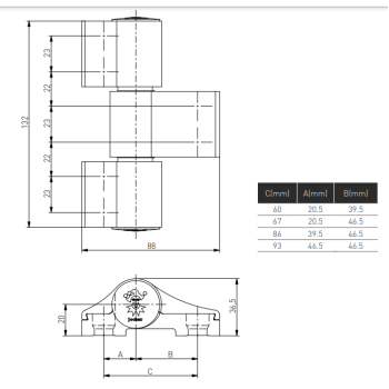 Трехсекционная петля для алюминиевых дверей Jocker-Alu