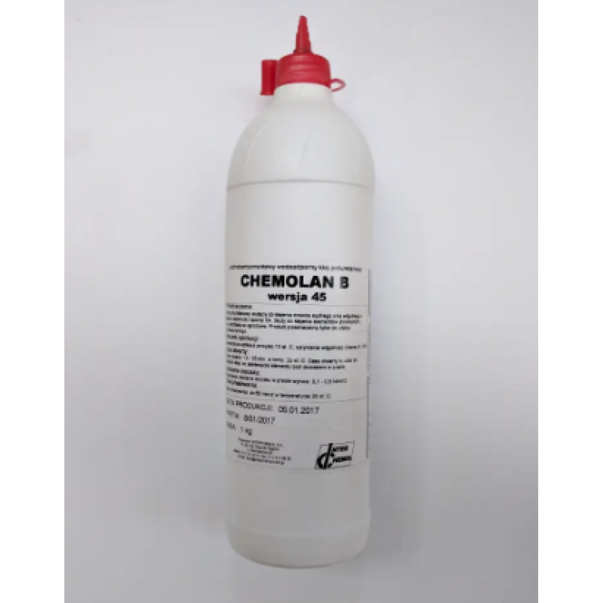 Chemolan B вариант 45-й это водостойкий, однокомпонентный полиуретановый клей D4, затвердевающий под воздействием влажности воздуха. Представляет собой вязкую жидкость коричневого цвета. После затвердевания образуется клеевое соединение с высокой стойкостью к низкой температуре и воде (клей D4).