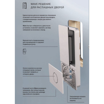В паре с Polaris Wave везде, где требуется ручка заподлицо (двери в плоскости, деревянные панели и т.д.), подходит даже для дверей с уже проделанными отверстиями для традиционных замков.