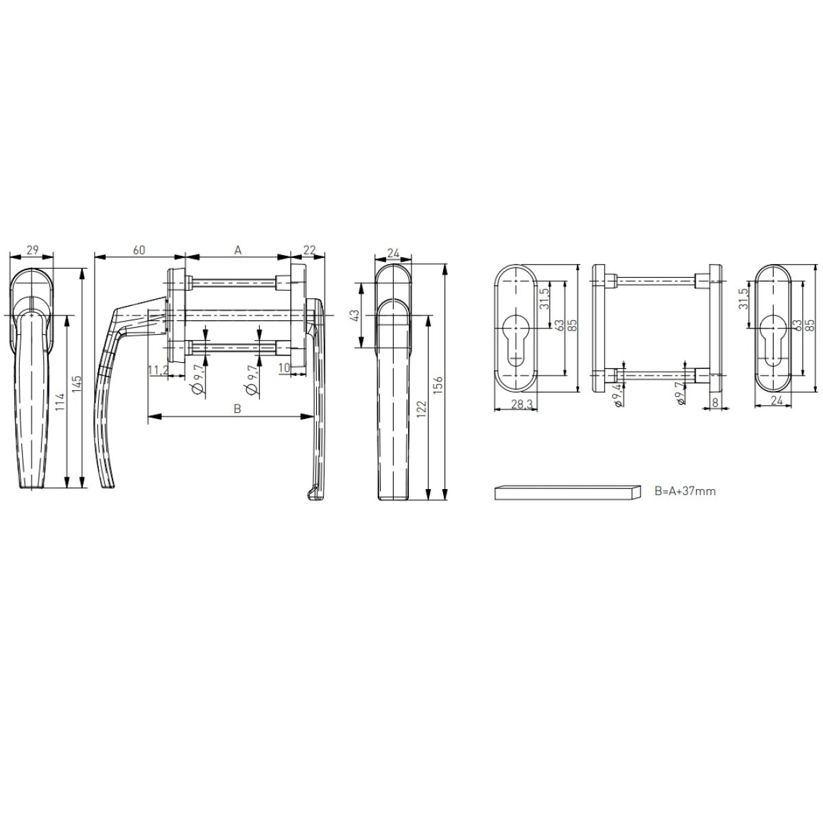 Ручка балконна двостороння