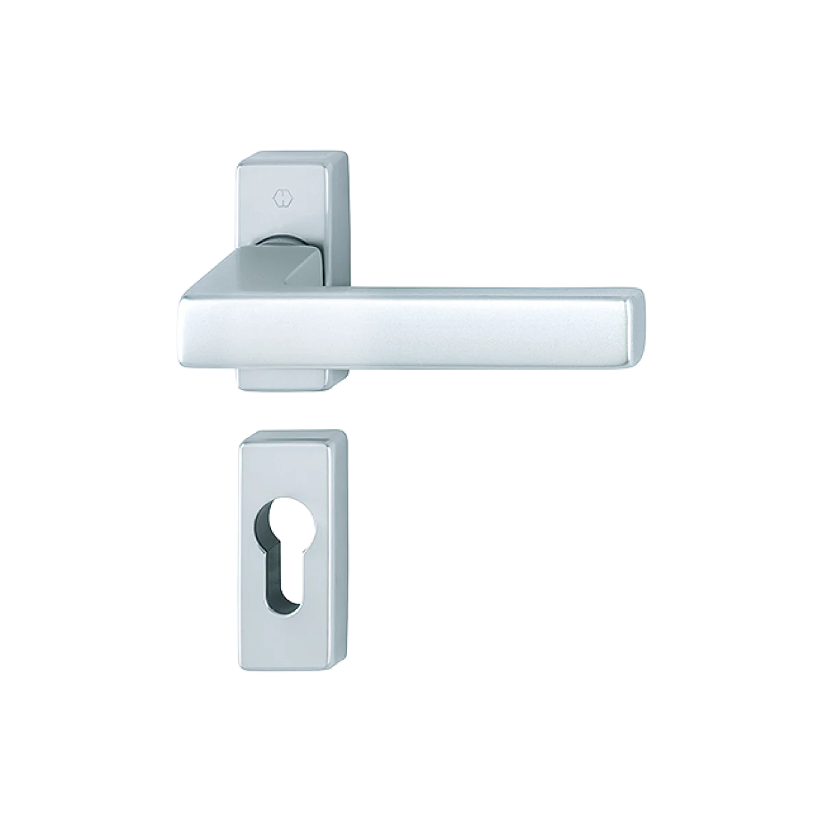 Віконні ручки - Колір - Титан матовий, Віконні ручки - Бренд - Hoppe, Fimet - Форма розетки - Квадратна, Antique collection - Призначення ручки - Дверна, Дерево-алюмінієва система Gutmann - Країна-виробник - Німеччина