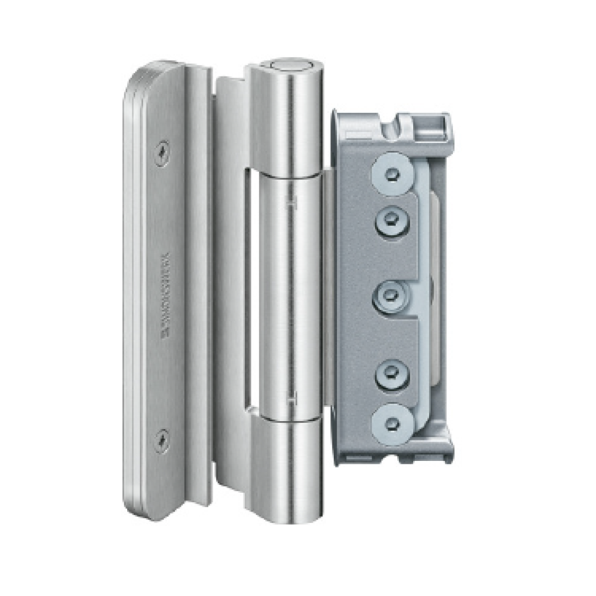 Петля для деревянных входных дверей SIMONSWERK BAKA Protect 4030 3D FD MSTS со скрытым базирующим элементом в створочной и в рамной части для дверей с уплотнением створки.
