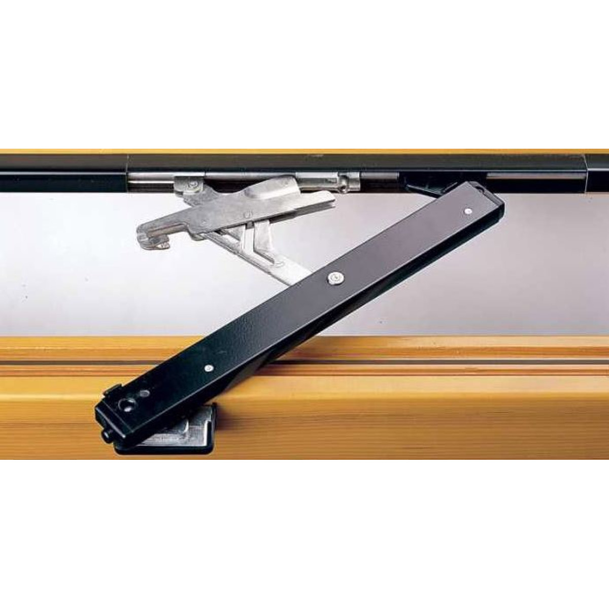 открывает, закрывает и фиксирует откидывающиеся створки окон из дерева, металла и пластмассы с весом стеклопакета до 40 кг/м2.