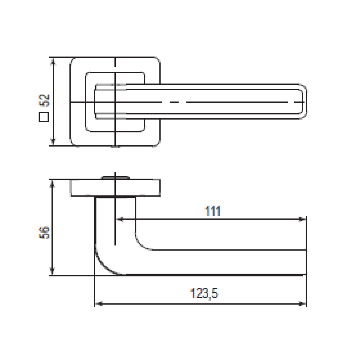 - Квадрат 8х105 мм (шток ручки) на толщину двери 35-55 мм;
