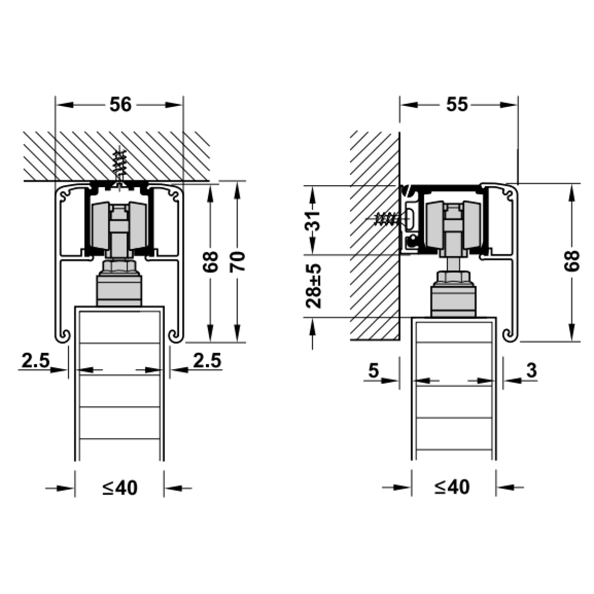 Раздвижные системы Slido Classic 40-160P с 2х-сторонним доводчиком