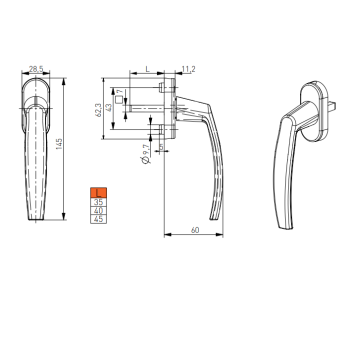 - Стандартные размеры штифта - 35, 40 и 45мм