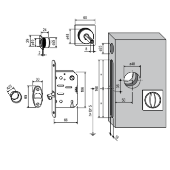Scivola TRE Class – замок для раздвижных дверей. Cтандартные отверстия под фрезеровку фиксатор-ключ.