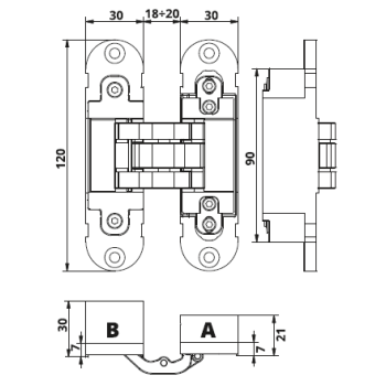 Отличительная особенность этой петли - 7 соединительных элементов (точек опоры), которые обеспечивают высокую нагрузочную способность, минимальное трение и плавный ход.