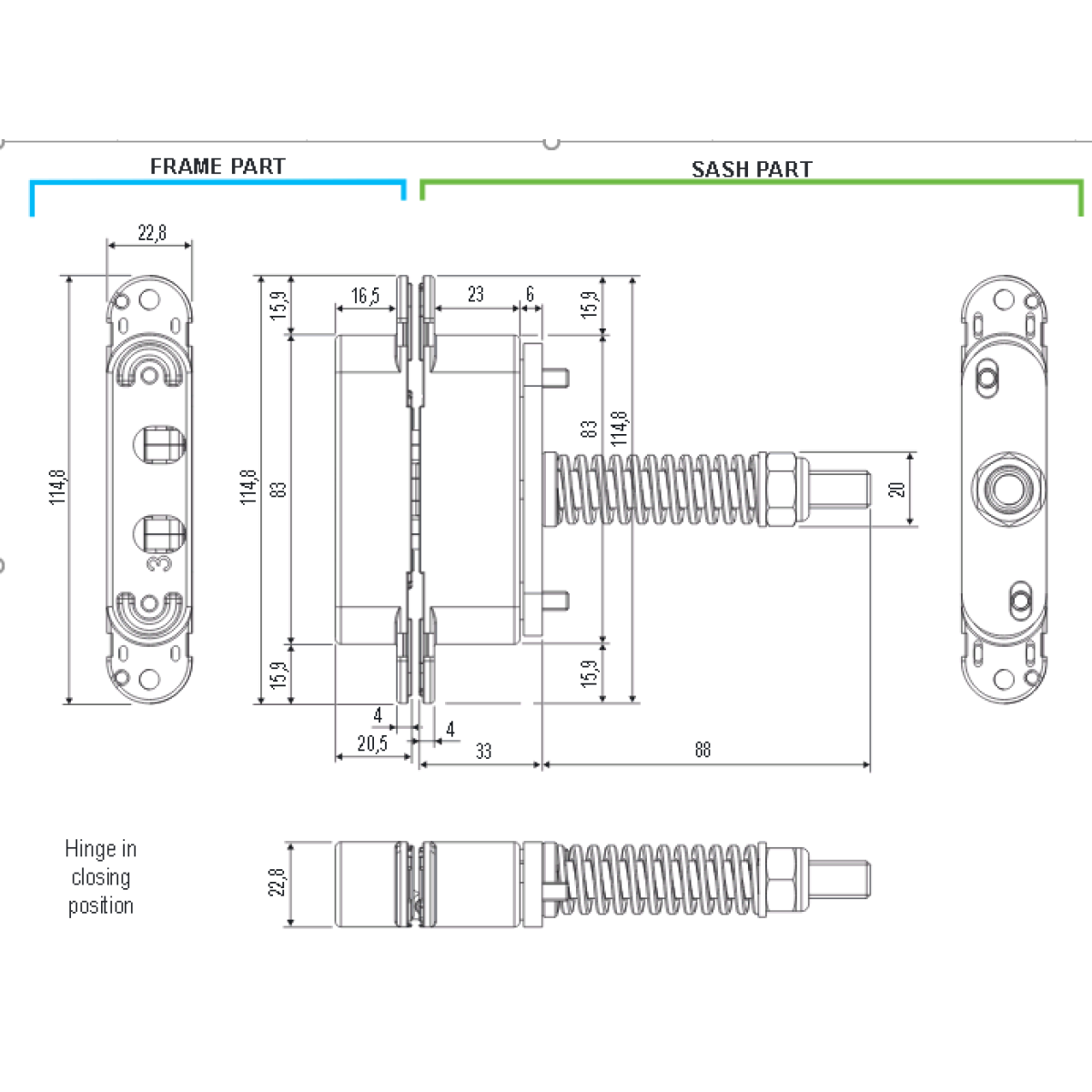 AGB Eclipse 3.2 HD Self изготавливается из цинкового сплава ZAMAK и предназначена для деревянных дверных полотен толщиной от 40 до 44 мм. Также благодаря толщине крепления (4 мм) подходит и для алюминиевых дверей. Обеспечивает их плавное открывание на 180º (при отсутствии наличники). Это означает, что в полном открытом состоянии дверь не будет занимать жилого пространства и мешать. Данная модель регулируется в 3-х измерениях: вертикаль +/- 2 мм, горизонталь +/- 1,5 мм, прижим +/- 1,0 мм. Таким образом, можно добить��я максимальной точности и отсутствия каких-либо щелей. Также особенностью является встроенный доводчик с уменьшенной до 21 мм глубиной посадки в коробку. Важным аспектом при подборе петель являются габариты дверей. Зная их, вы очень просто определитесь с их необходимым количеством из расчета того, что нагрузка должна быть не более 40 кг на 2 петли, или 60 кг - на 3.