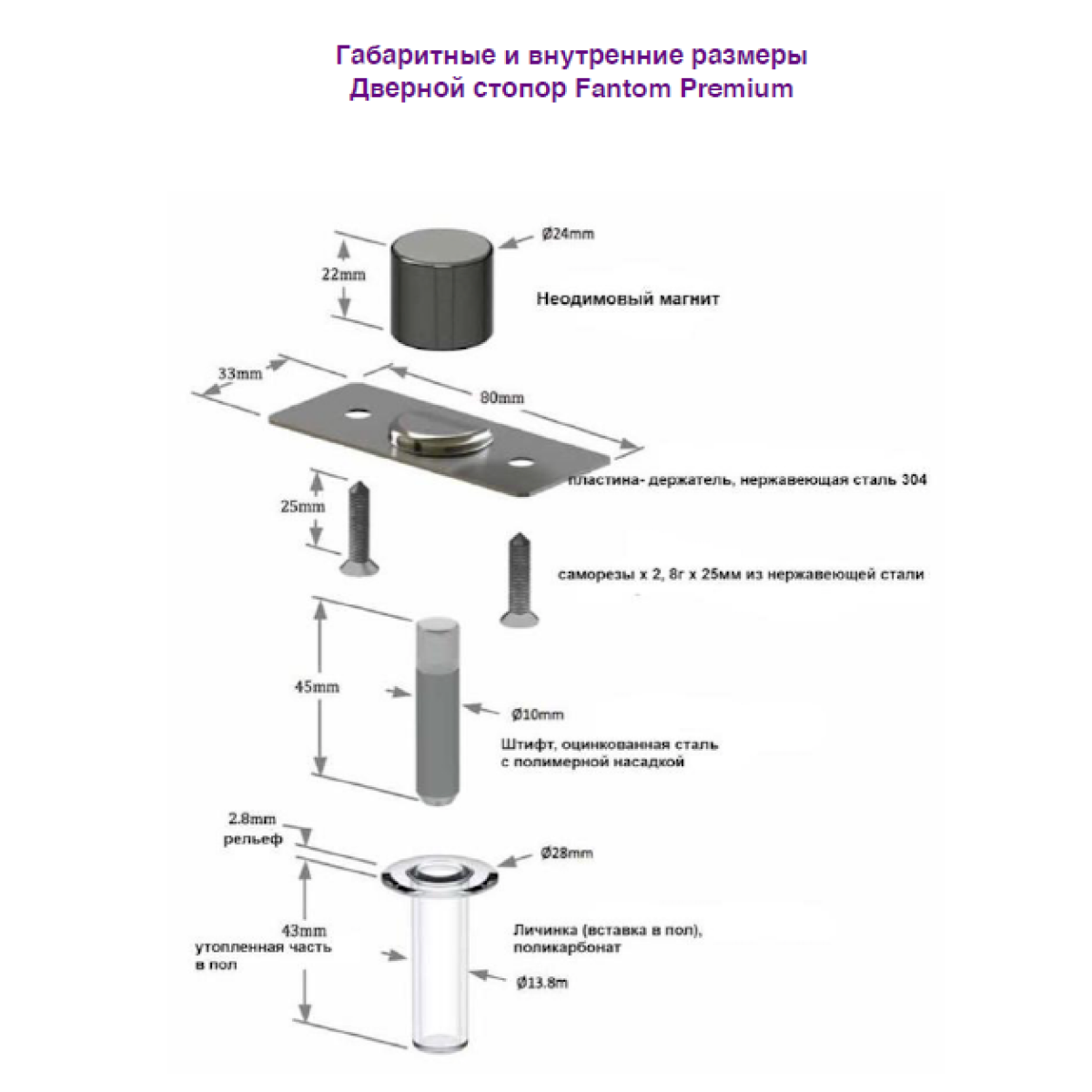 Магнитный ограничитель скрытого монтажа Fantom Premium Doorstop удерживает вашу дверь в открытом состоянии, имеет маленькие размеры, не выступает высоко над поверхностью напольного покрытие, что дает дополнительный комфорт и возможность избежать травм.