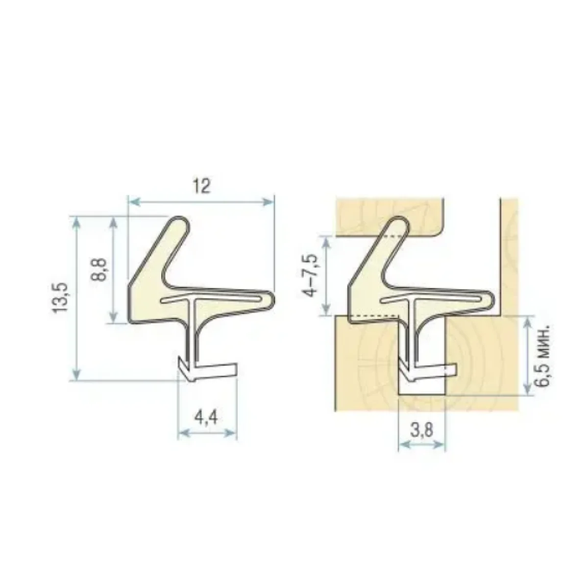 - Прочная вставка из стекловолоконной нити внутри профиля, придающая профилю стабильность формы;